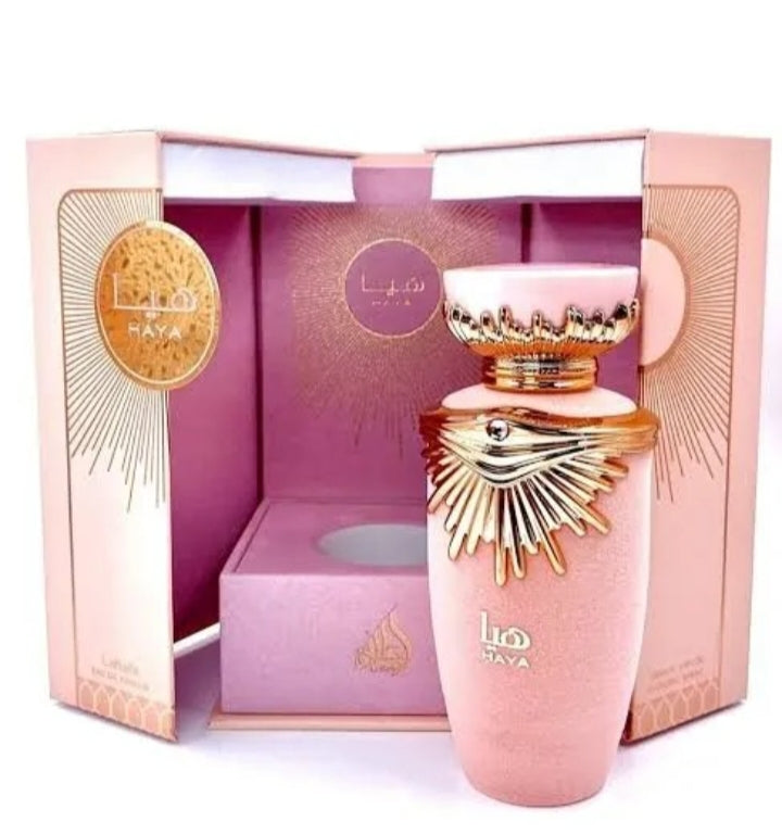 Brilla con tu esencia única con Haya de Lattafa 💖 — una fragancia que combina dulzura, elegancia y seguridad en cada nota.