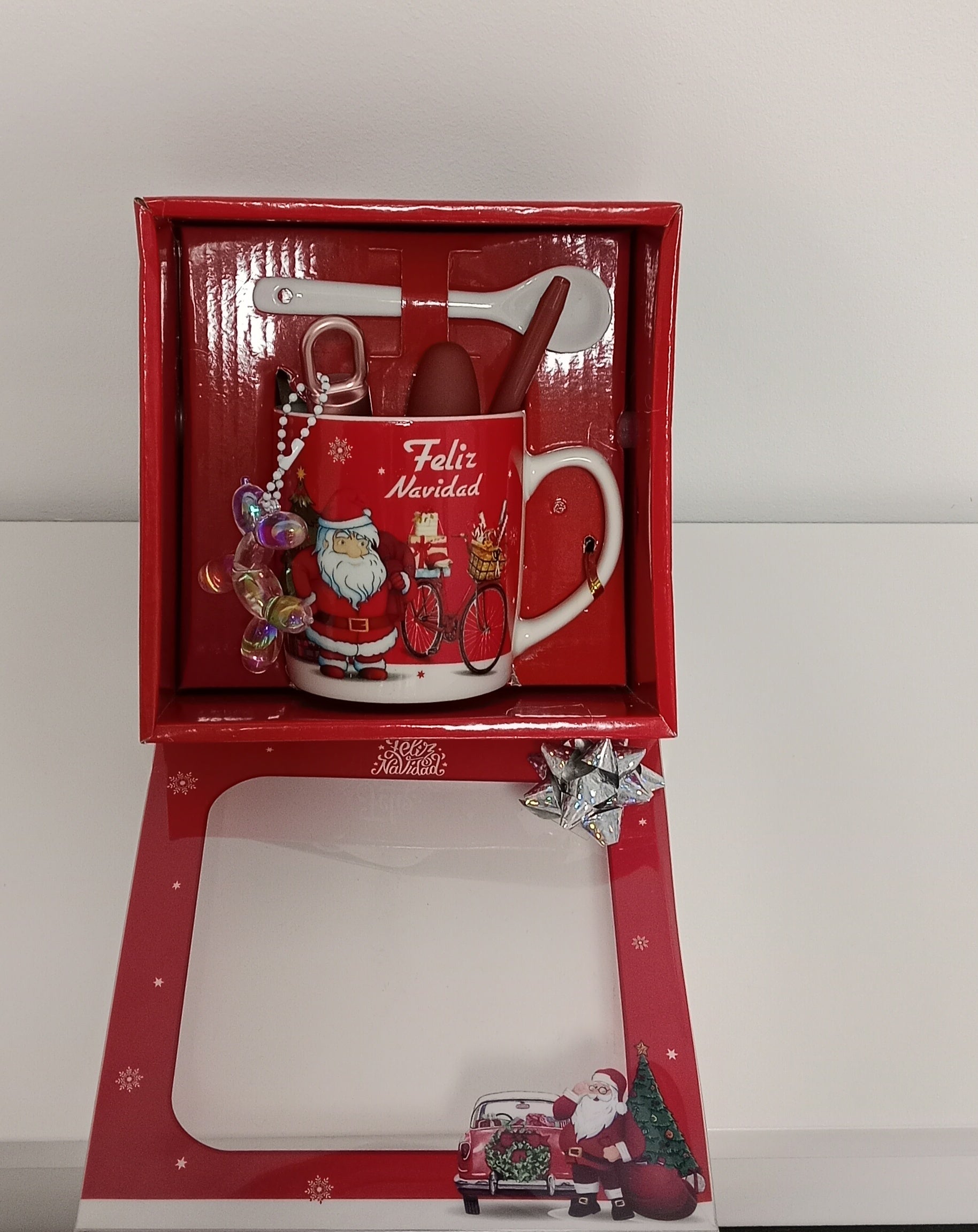 ☕ Taza navideña con diseño de Santa Claus + cuchara.