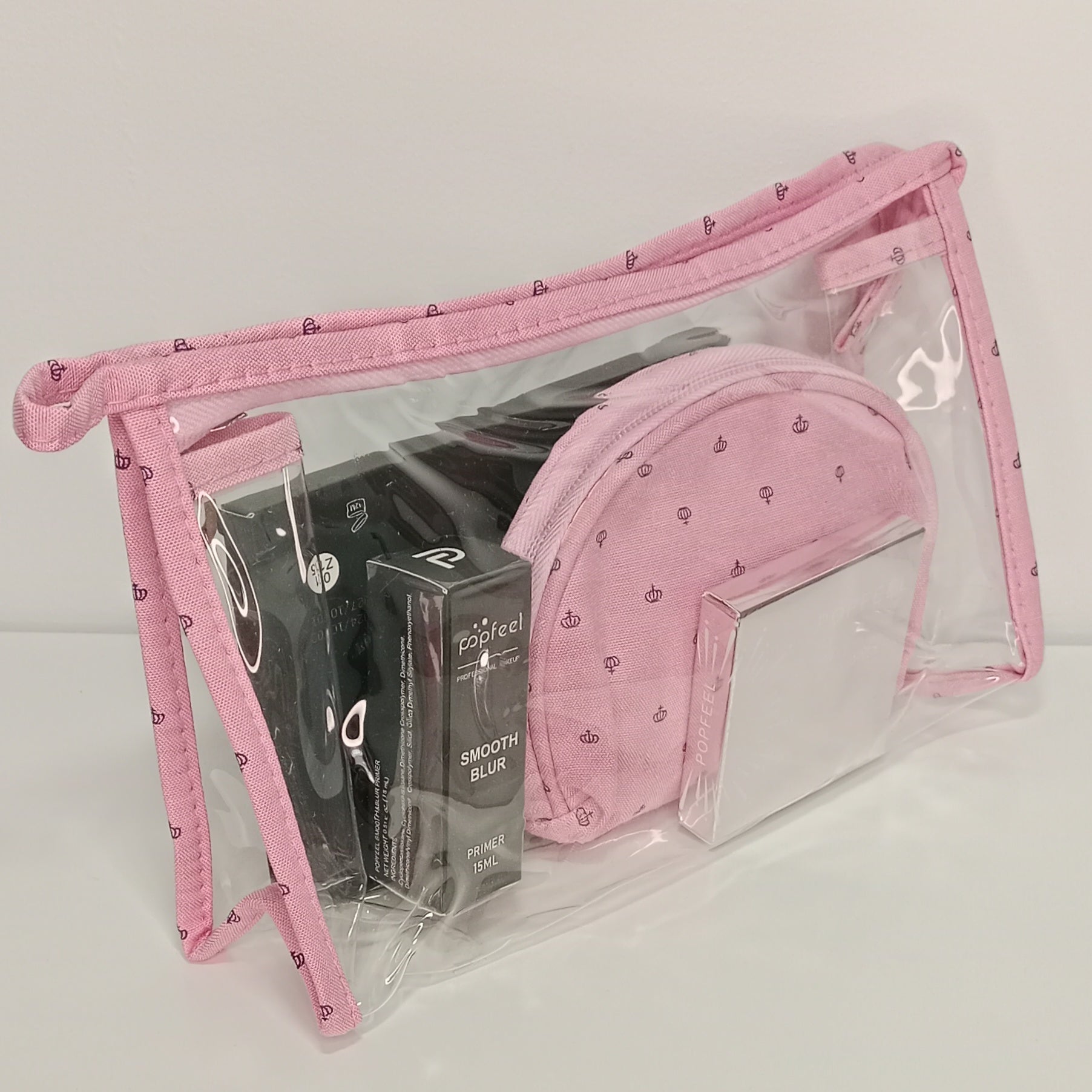 🎀 Neceser pequeño rosa + bolsa transparente para mantener todo ordenado