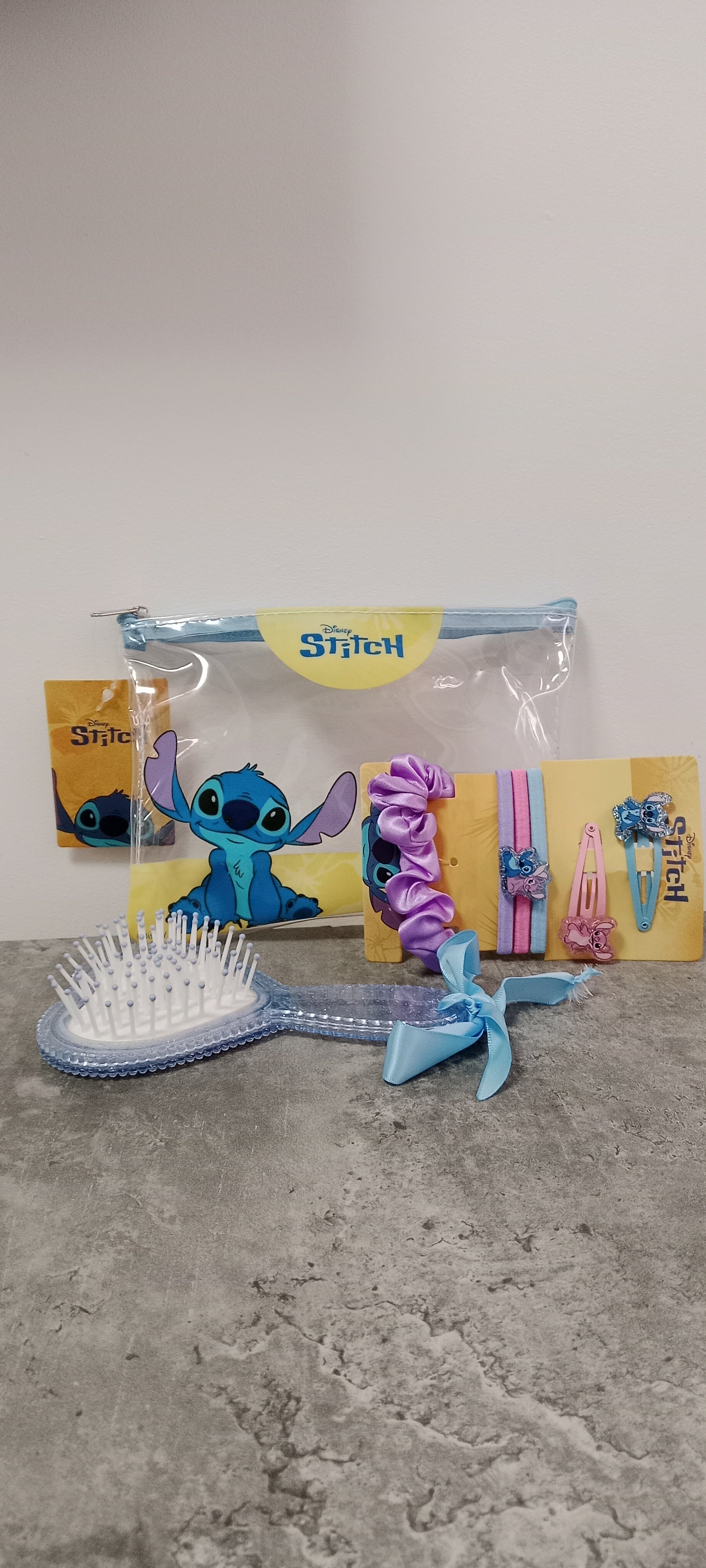 ¡Lleva la magia de Lilo & Stitch a todas partes con este adorable set de aseo! 💙 Incluye un práctico neceser transparente, un cepillo de pelo y accesorios para el cabello inspirados en Stitch. Perfecto para mantener todo organizado en casa o durante tus viajes. ¡Un regalo ideal para fans de todas las edades! 🎁